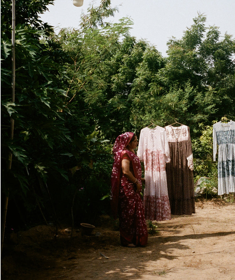 Our slow fashion garments are handcrafted by artisan communities in India, supporting women's empowerment and preserving ancient textile traditions.
