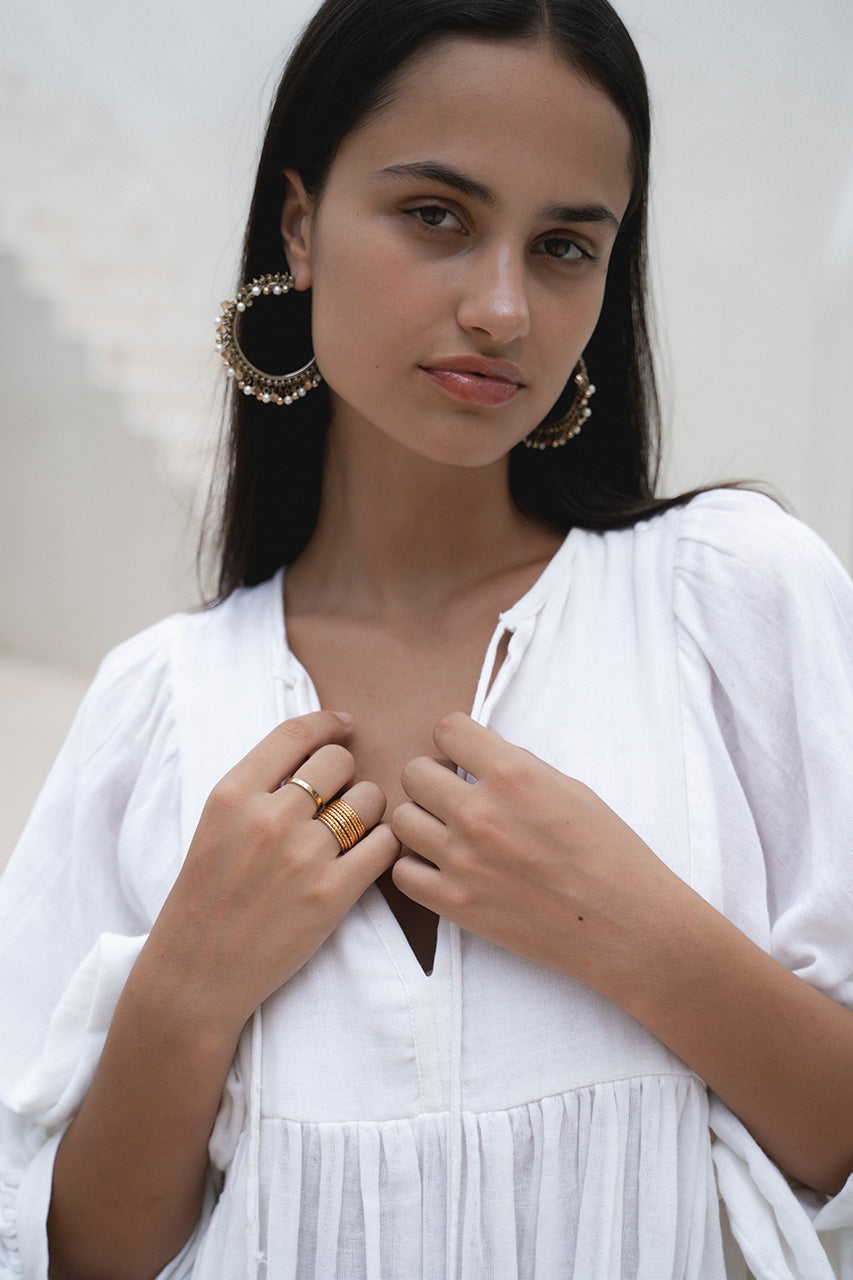 Care ~ After washing, this garment will take on a beautiful cheesecloth effect. We recommend a gentle, cold water hand wash using natural detergents, and hang drying in the shade. Handcrafted garments are delicate, however, designed to last when treated mindfully with love and care.